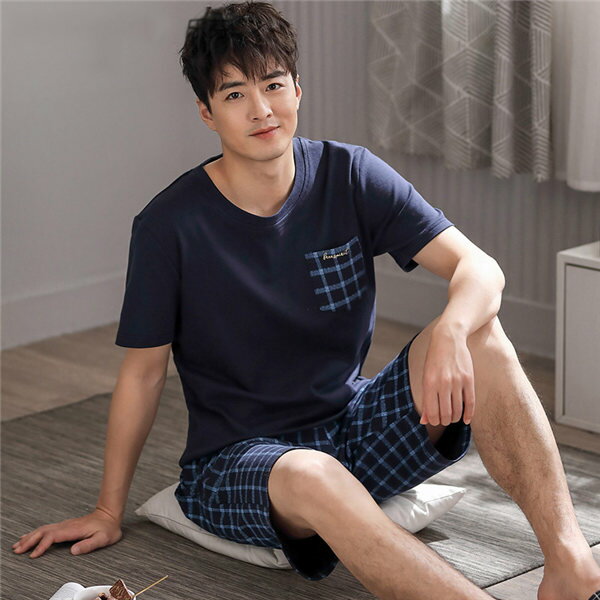 パジャマ メンズ 半袖 綿100% 半袖 夏 上下セット ナイトウェア ルームウェア パンツ 部屋着 父の日ギフト 大きいサイズ ネイビー 韓国ファッション 寝間着 ギフト結婚祝い おしゃれ プレゼント男性 夫 敬老の日 ギフト 誕生日 M/L/XL/2XL/3XL/4XL